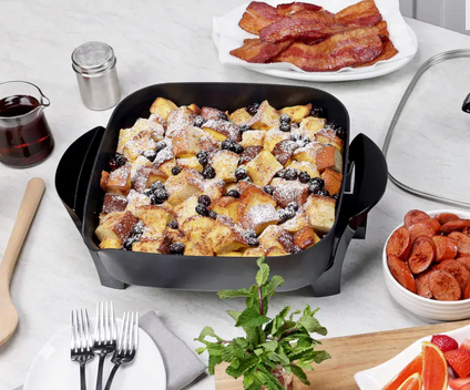 Tempered glass cover lets you to see what's inside. Ideal for use as a buffet server when entertaining.
