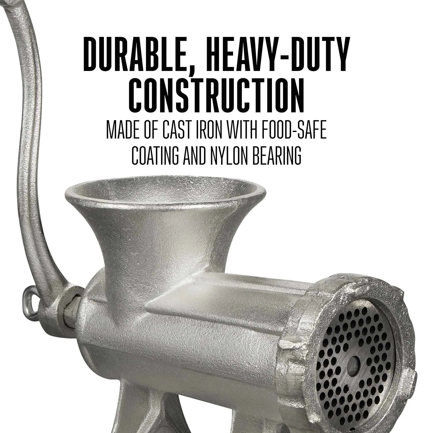 This manual meat grinder with 4 x 5 hopper is the perfect size for hand-processing wild game, farm-raised animals or bulk-purchase meats. Make your own freshly ground meat for burgers, chili, meat loaf and other foods. Easily make batches of homemade sausage with the included sausage stuffing accessory kit or grind beef, turkey, chicken, bison and other meats.