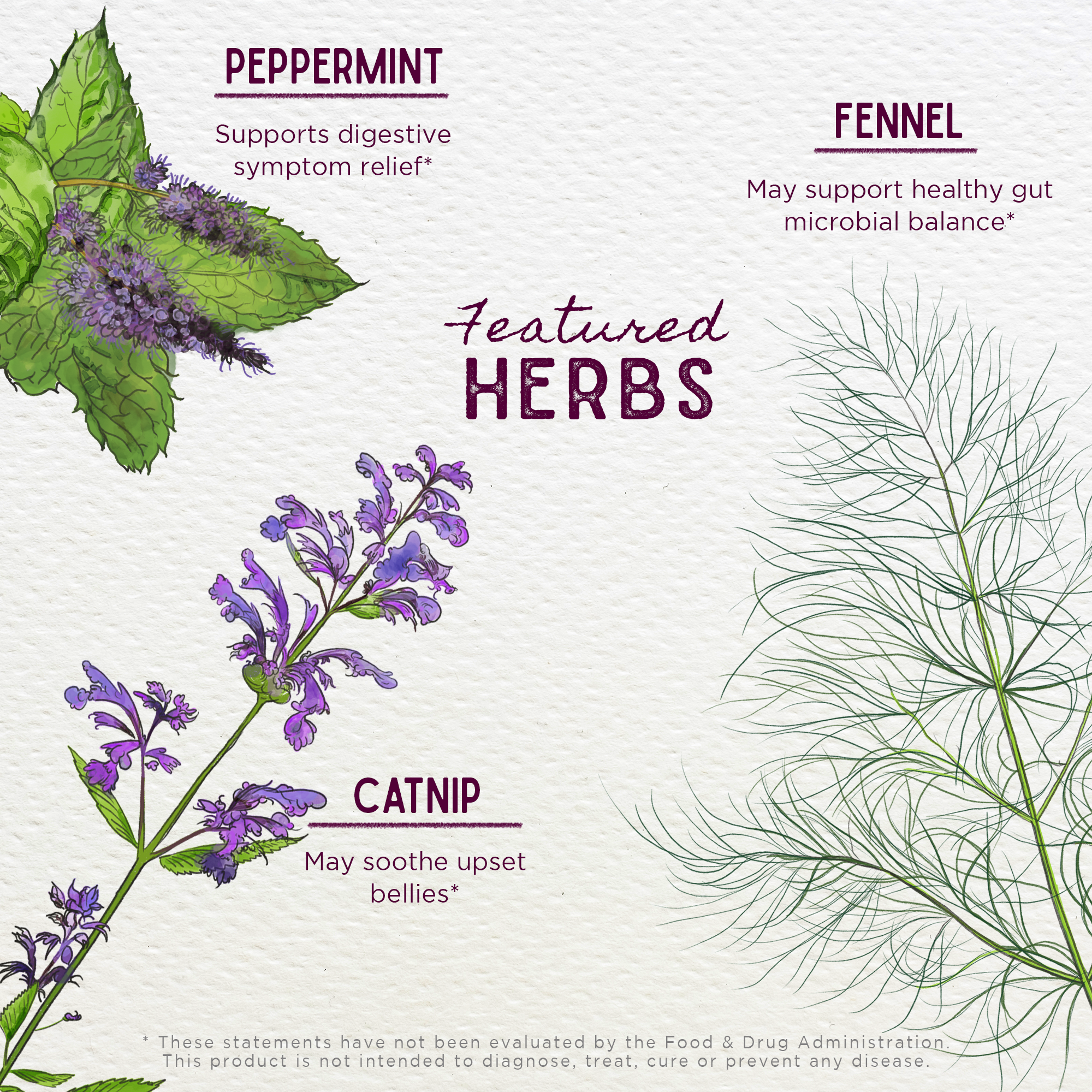 - Catnip aerials: Nepeta cataria is most well known for being a favorite of cats, but it is beneficial for humans too. It is a member of the mint family, and like other mints, may help support optimal digestion and soothe digestive comfort.