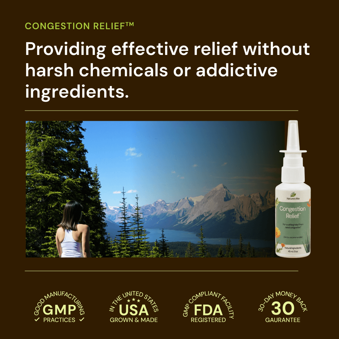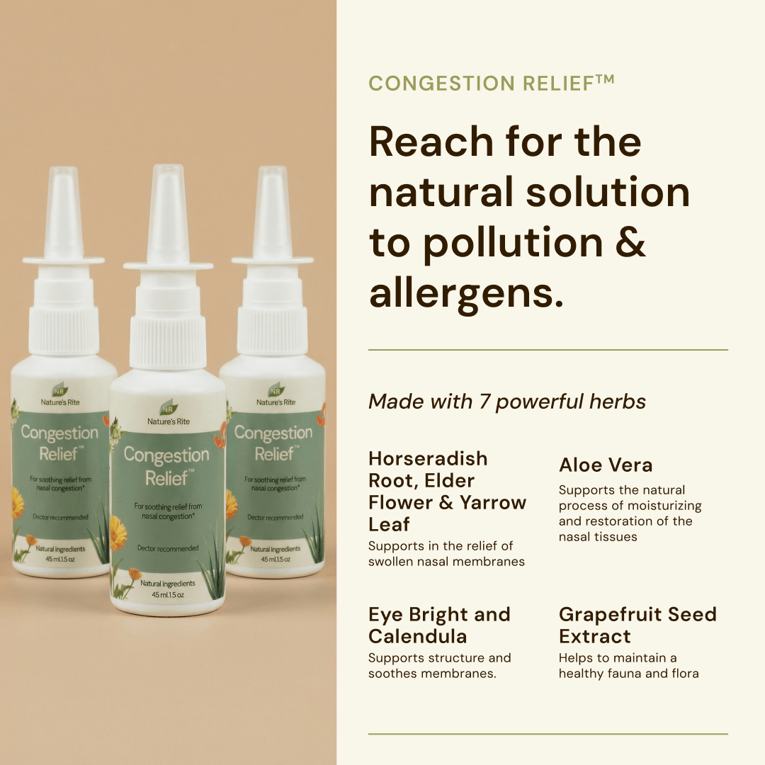 Pollen, pollutants, and dander can cause nasal congestion, making it hard to breathe. This natural, gentle spray works to ease blocked sinuses and support clear nasal passages, providing effective relief without harsh chemicals or addictive ingredients.