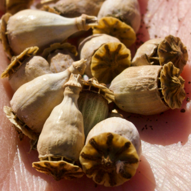 Seed Saving Instructions: Allow Giant White Poppy plants to dry and wait until seed head is brown and crispy. Snap seed heads into bucket, and break open to dislodge seeds. Store in a cool, dark and dry place.