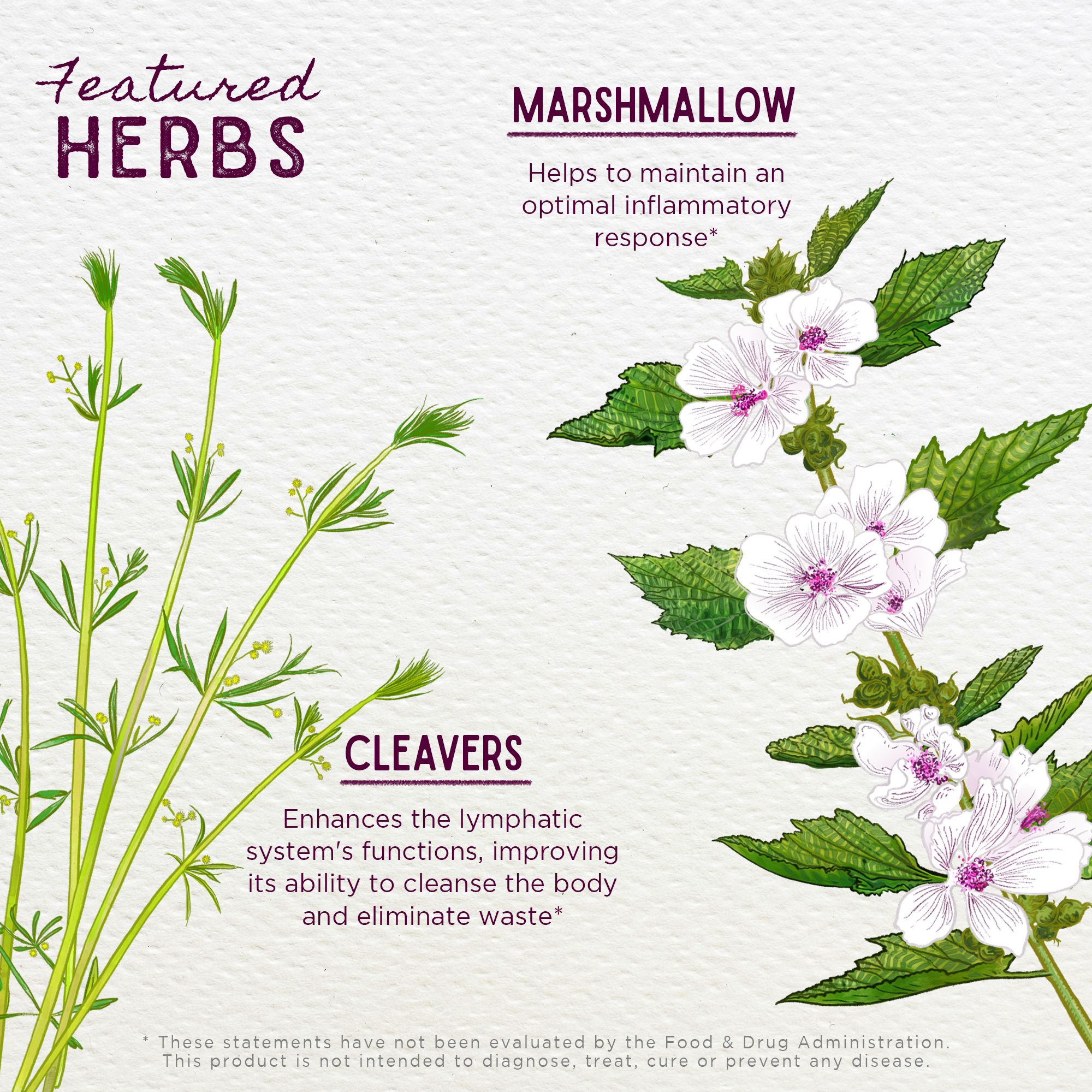 - Marshmallow root: Althaea officinalis has diuretic properties that can help increase urine flow, potentially aiding in flushing out waste and helps to maintain an optimal inflammatory response.