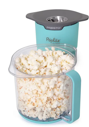 Pops with hot air, not oil, for a low-fat treat. Faster, healthier, and more economical than most microwave bag popcorn.