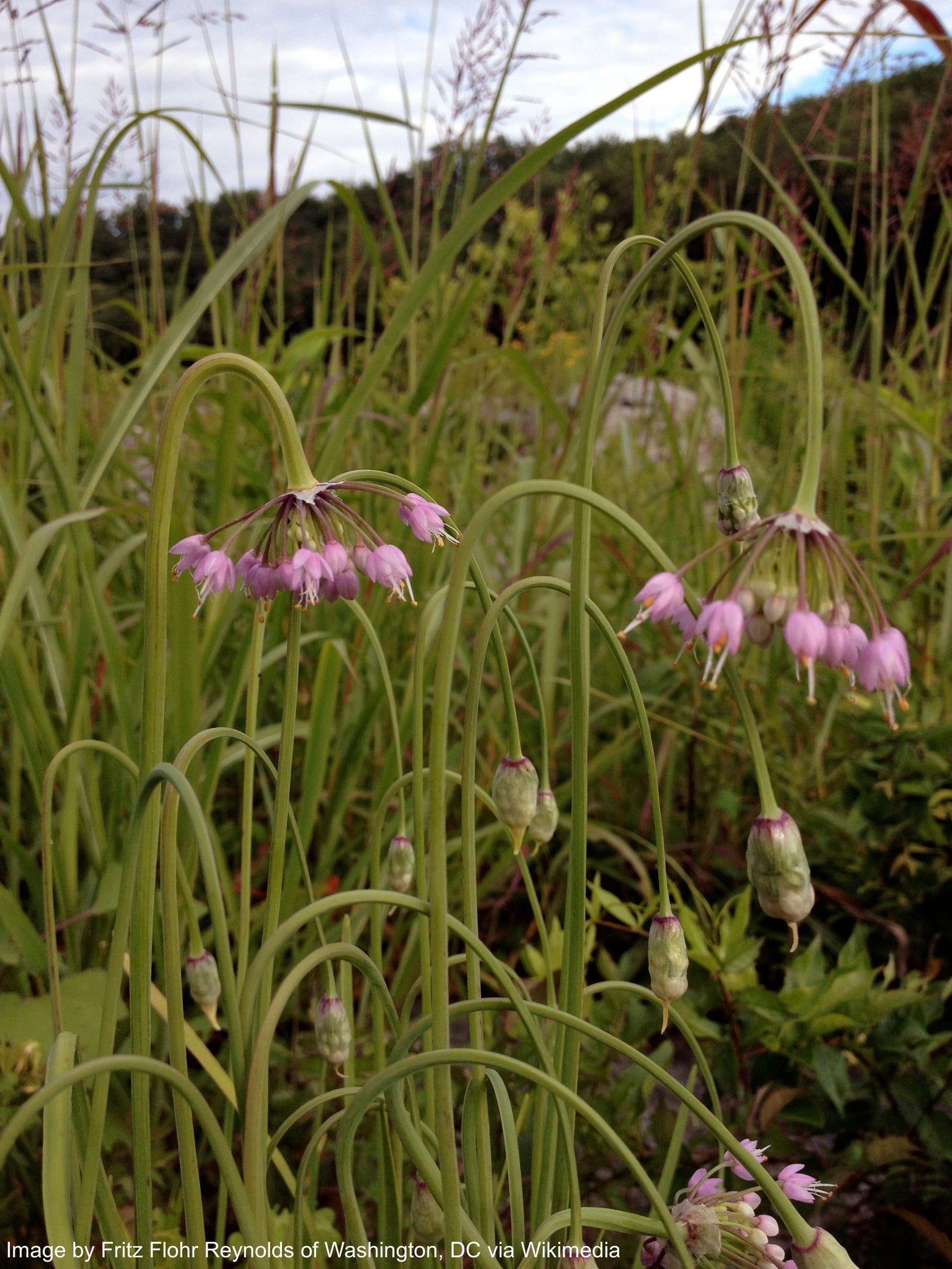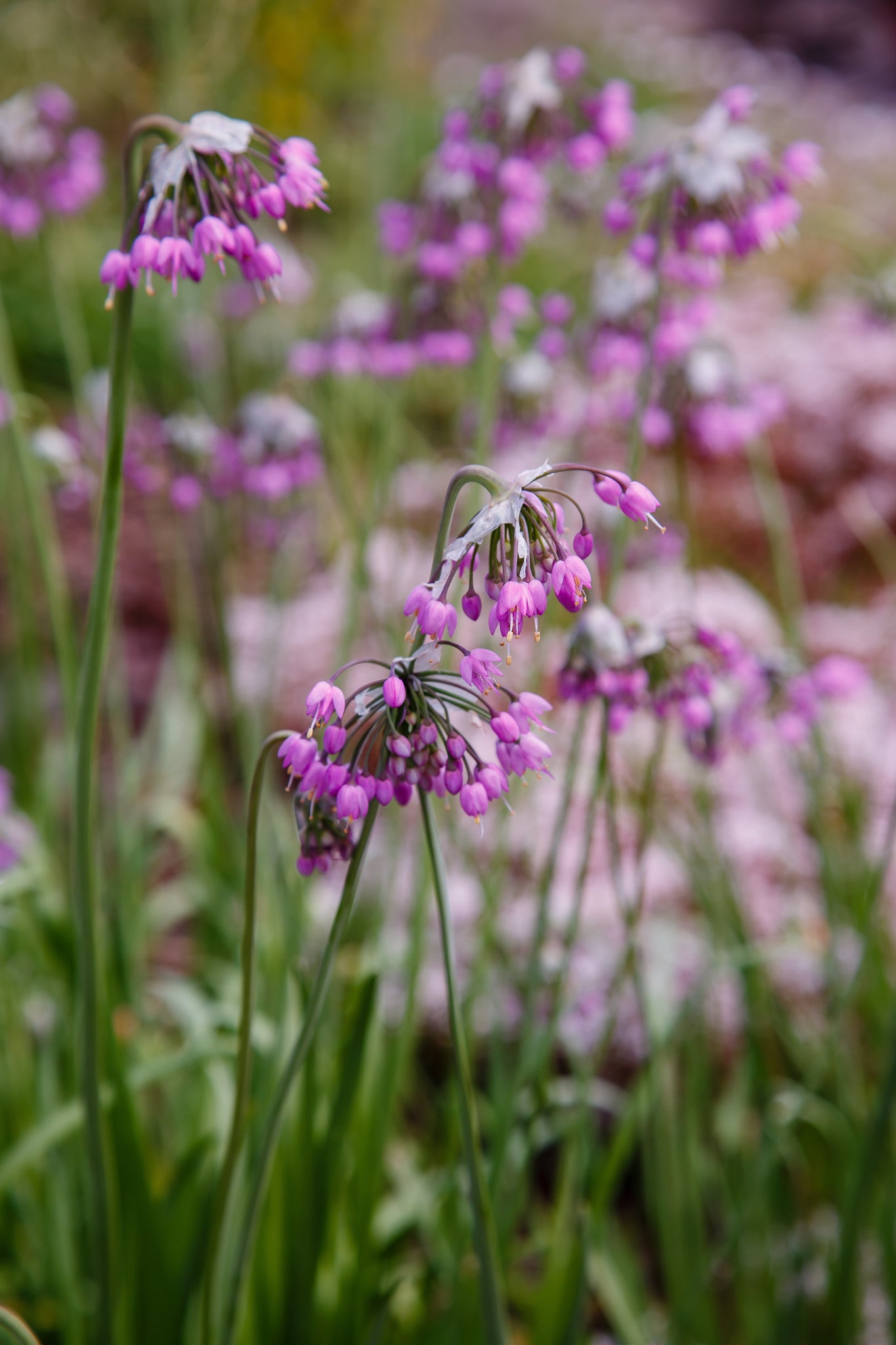 Also known as Lady’s Leek, Allium cernuum is easy to spot by the graceful bend at the top of its stem. Above its slender, grass-like leaves, each stem holds a small cluster of pink flowers that gently nod downward, following the curve that gives the plant its characteristic bow. Each slender, tubular blossom hangs gracefully, creating a subtle movement in breezy conditions that draws the eye and attracts a variety of bees, while also calling in butterflies and hummingbirds. Its nodding flowers add a graceful vertical accent, while its bulbs slowly multiply, creating colonies over time.