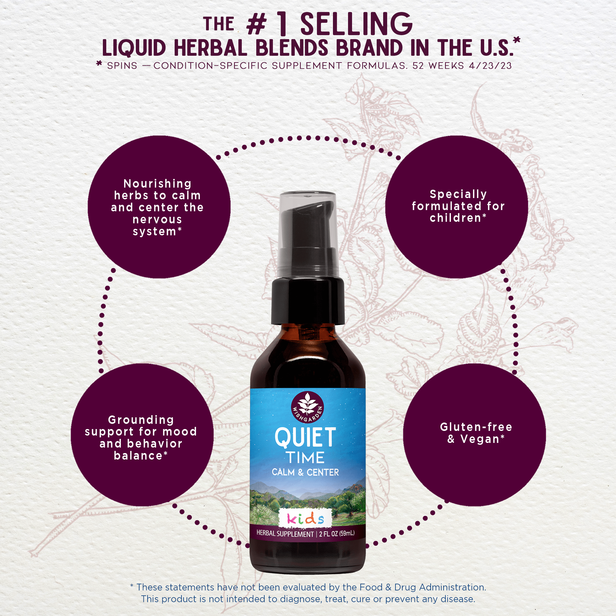 Children's nerves can get easily frazzled, which can frazzle parents, too. Quiet Time Calm & Center for Kids helps to unwind and support a child in returning to a centered state. Formulated with gentle herbs to calm and soothe.