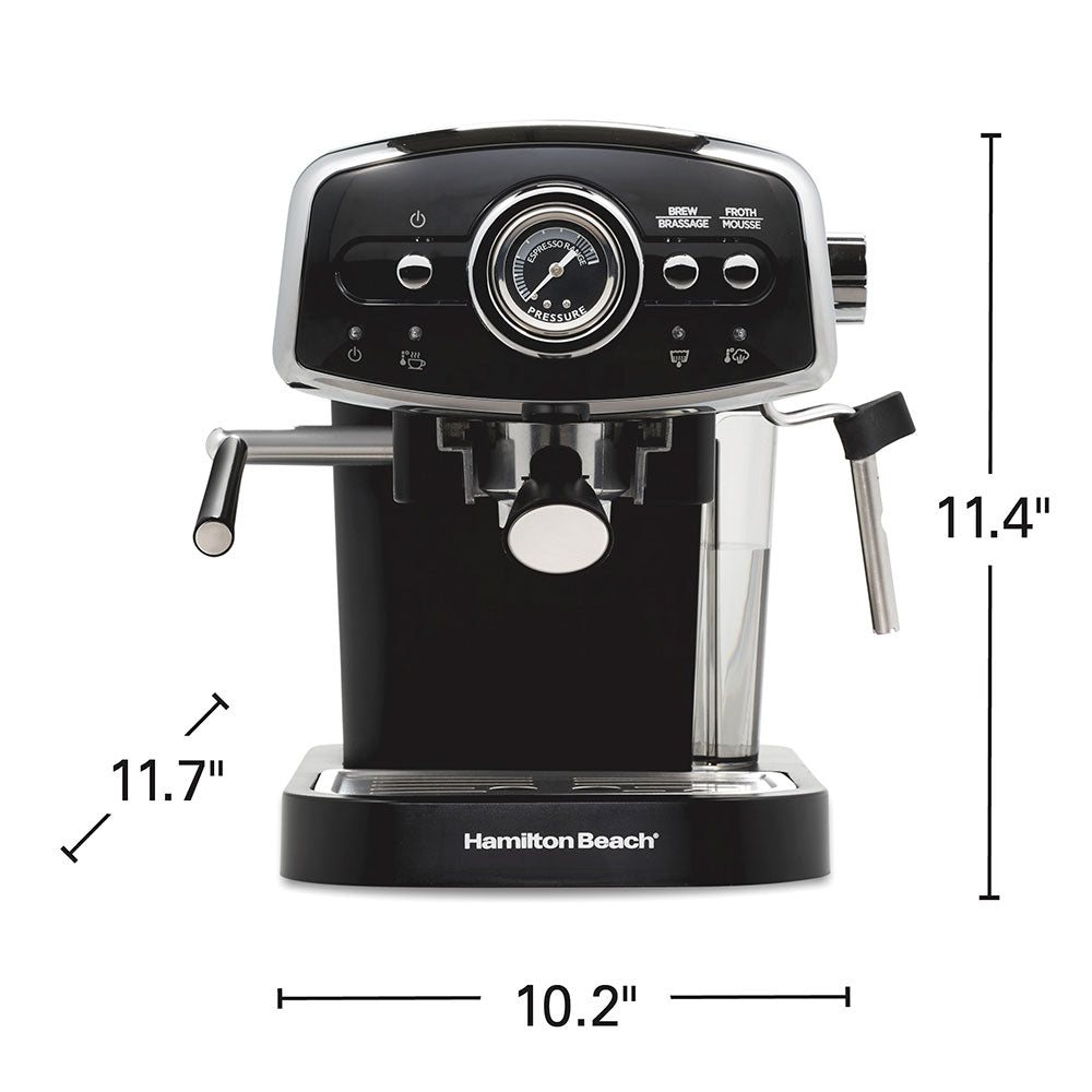Make authentic, barista-quality espresso like the pros in the comfort of your home. The Hamilton Beach Slide & Lock Espresso Maker has a patented Slide & Lock portafilter that makes brewing a breeze. With its innovative design, you can easily slide the portafilter in place from the front of the machine and lock it on the side. New to brewing espresso? The powerful 15 bar Italian pump fully extracts espresso's flavor for an authentic café taste, silky crema and quality results every time. Good espresso extraction depends on using the right finely ground espresso coffee and correctly tamping the grounds before brewing.