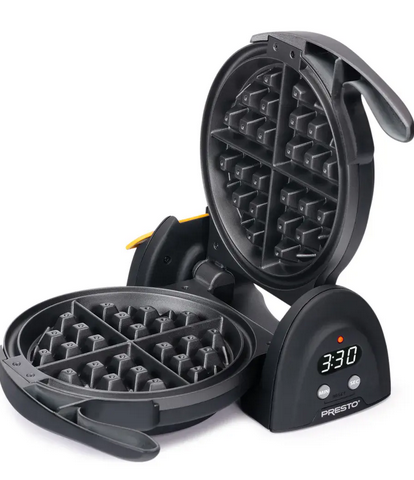 Extra-thick grid makes 7-inch diameter waffles and divides them into four easy-to-cut sections.